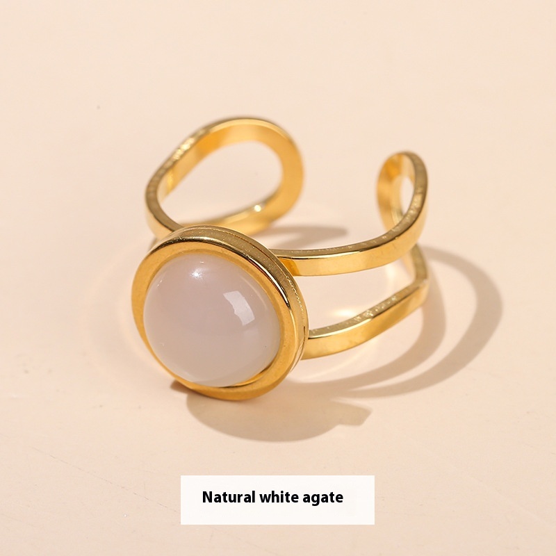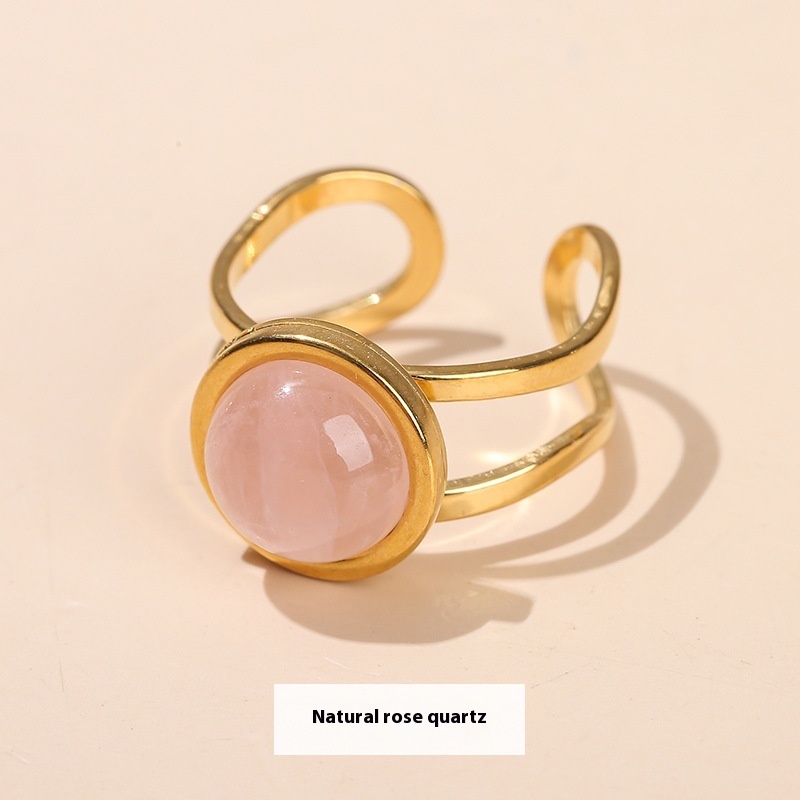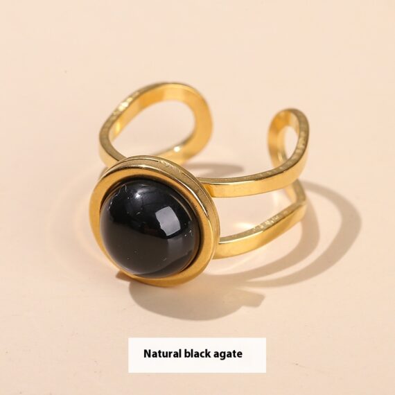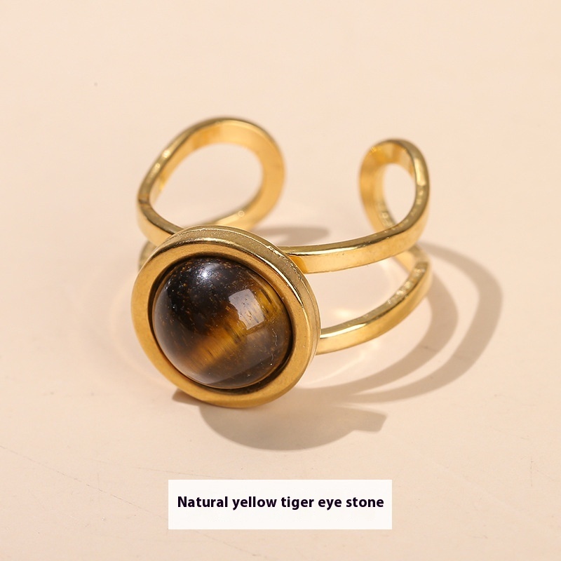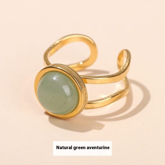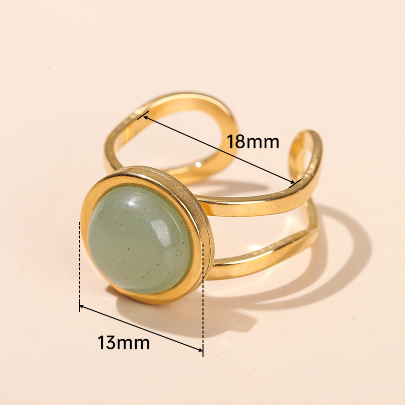 Color: red agate round open titanium steel ring gold, natural green aventurine round open titanium steel ring gold, natural pink crystal round open titanium steel ring gold, natural yellow Tigereye round open titanium steel ring gold, natural black agate round open titanium steel ring Gold, Yellow Agate round open titanium steel ring gold, blue sand stone round open titanium steel ring gold, natural white agate round open titanium steel ring gold, natural brushed stone round open titanium steel ring Gold, pallisandro Classico round open titanium steel ring gold
