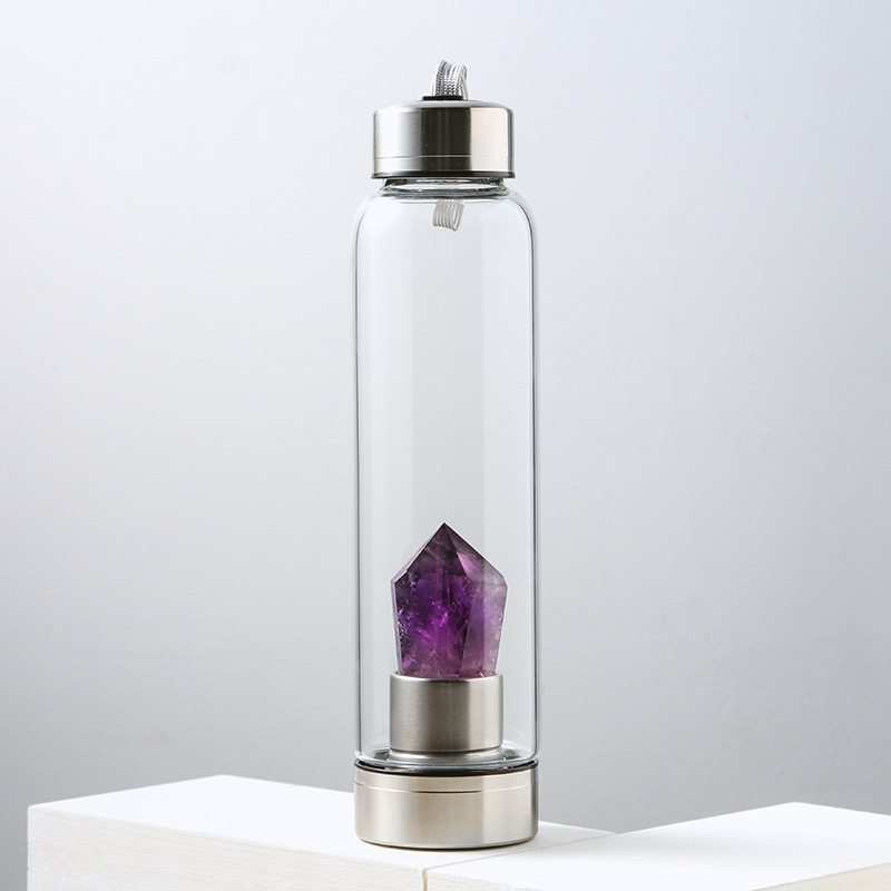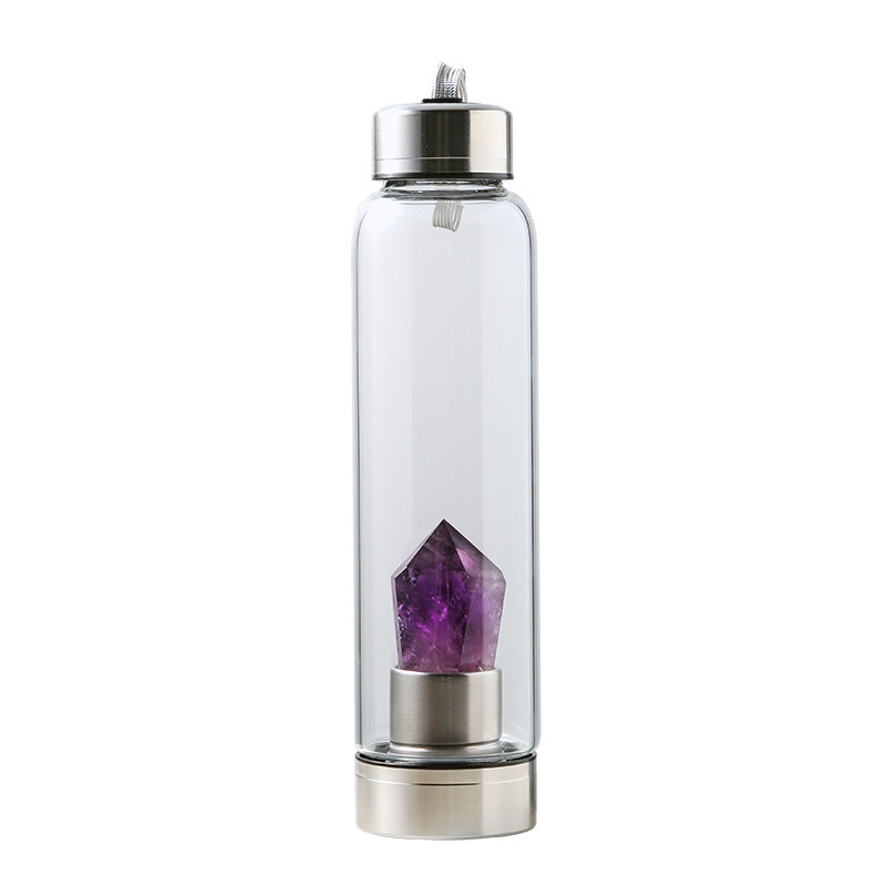 Water bottle with natural Amethyst crystal – Inner clarity with every sip 💜